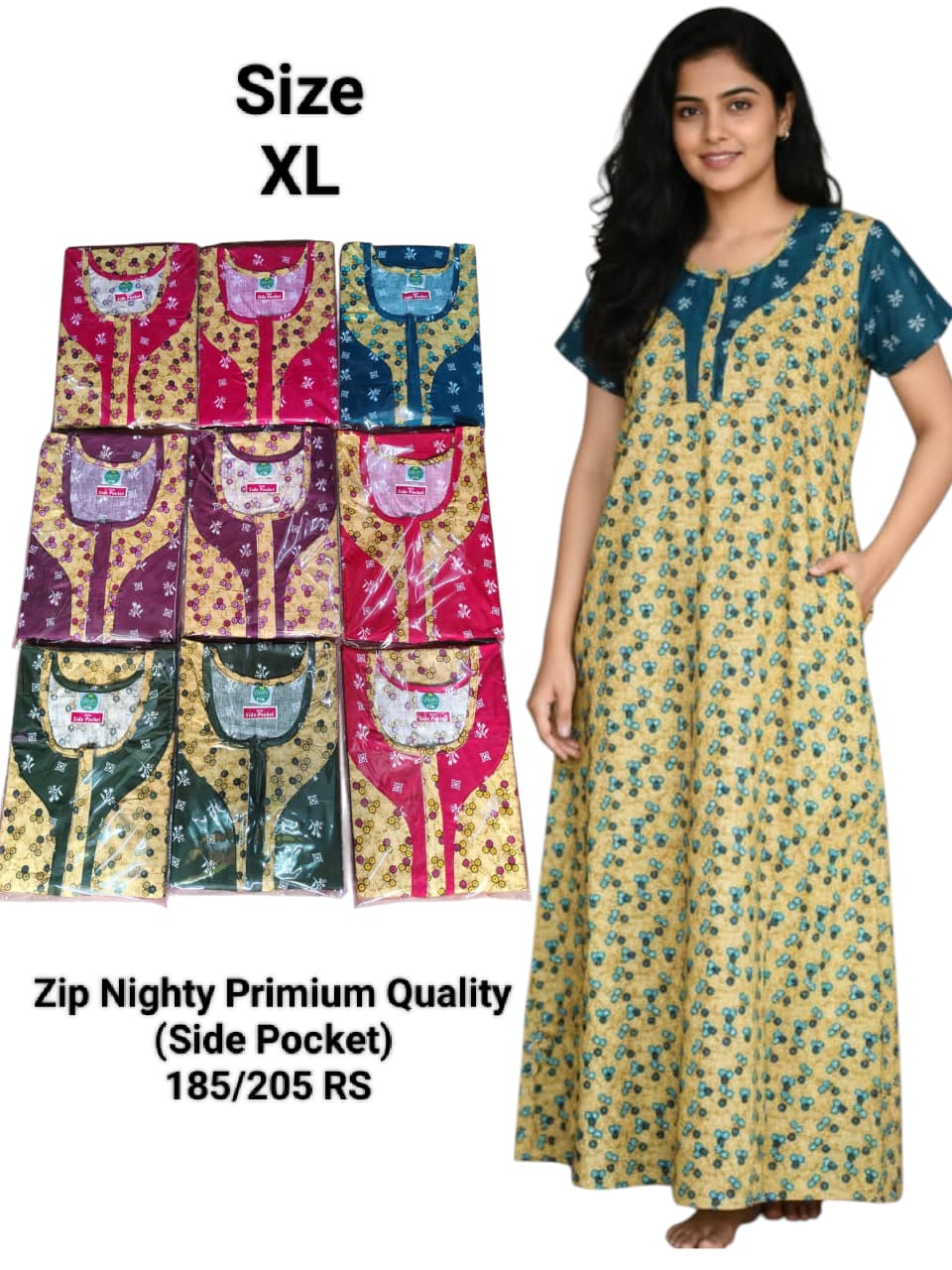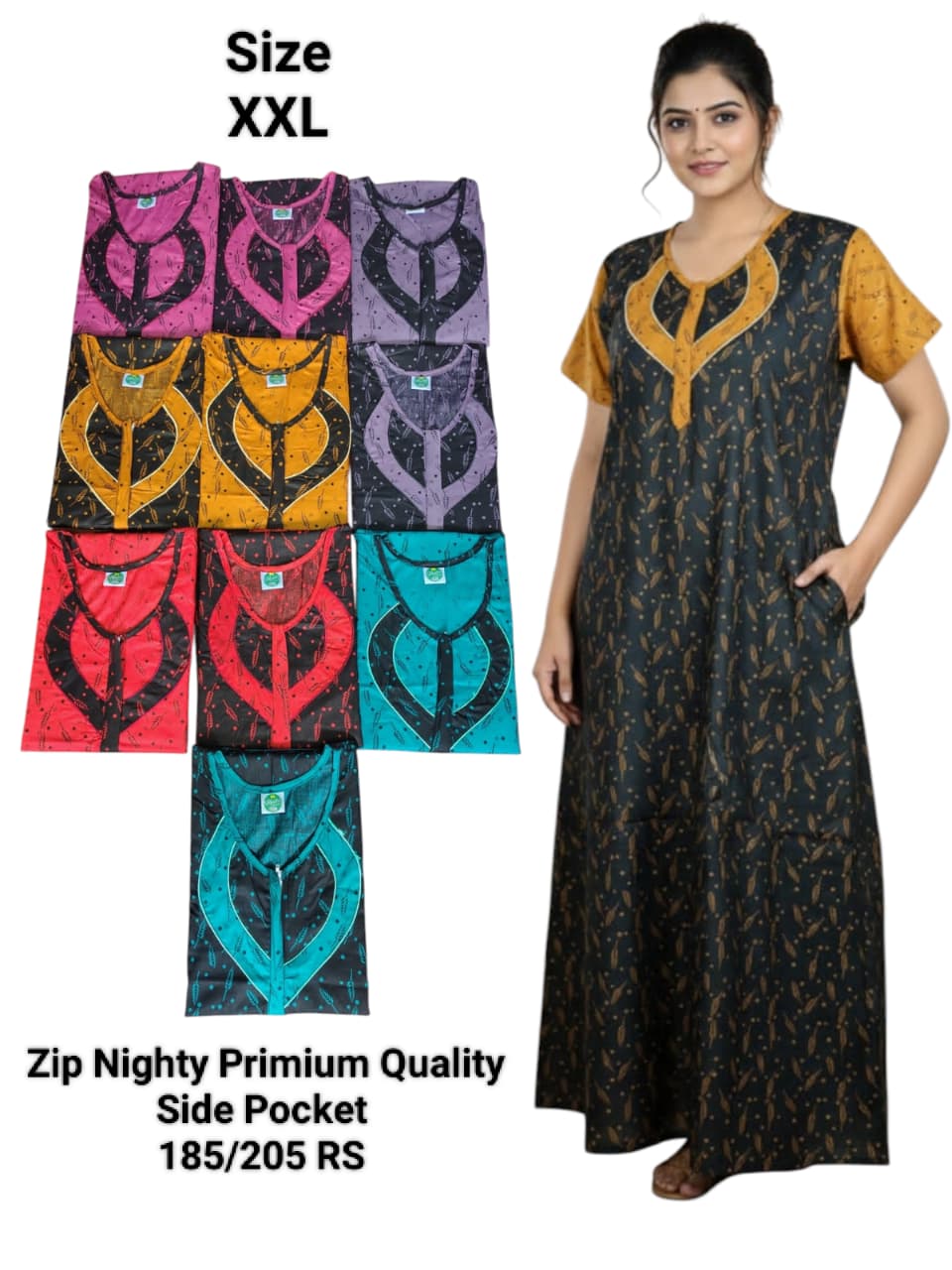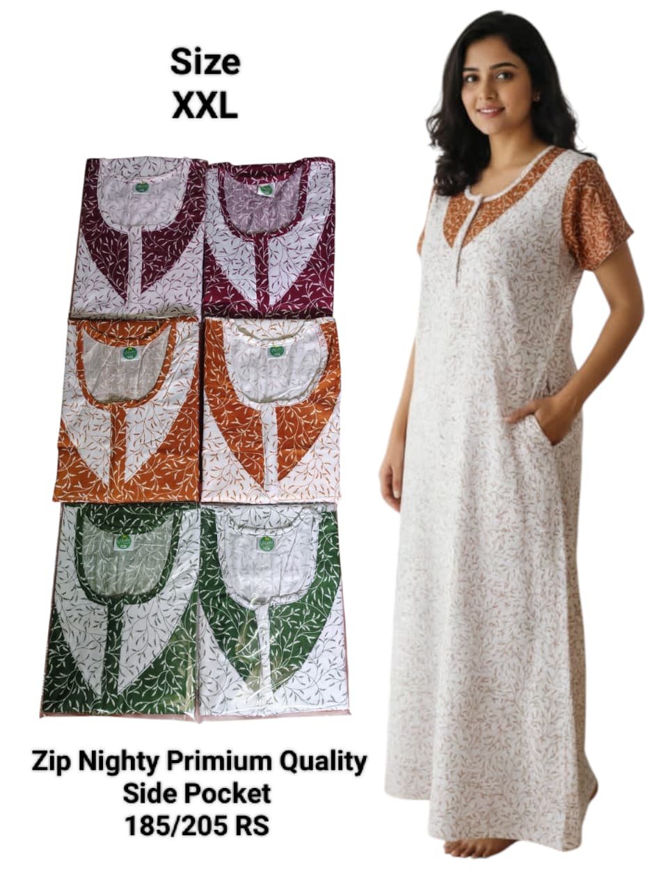 Zip Nighty Primium Quality (Side Pocket)