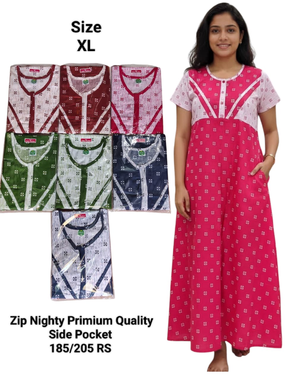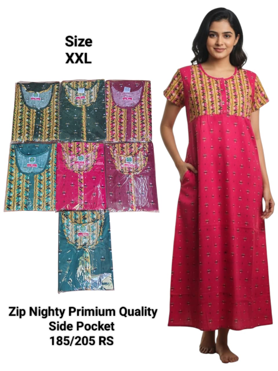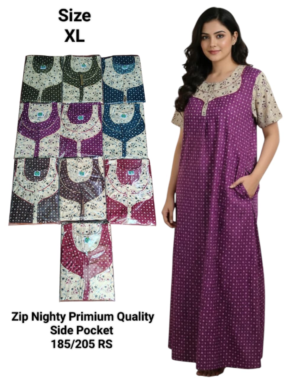 Zip Nighty Primium Quality (Side Pocket)